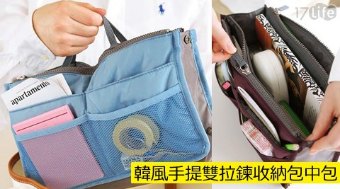 好物推薦~韓風手提雙拉鍊收納包中包